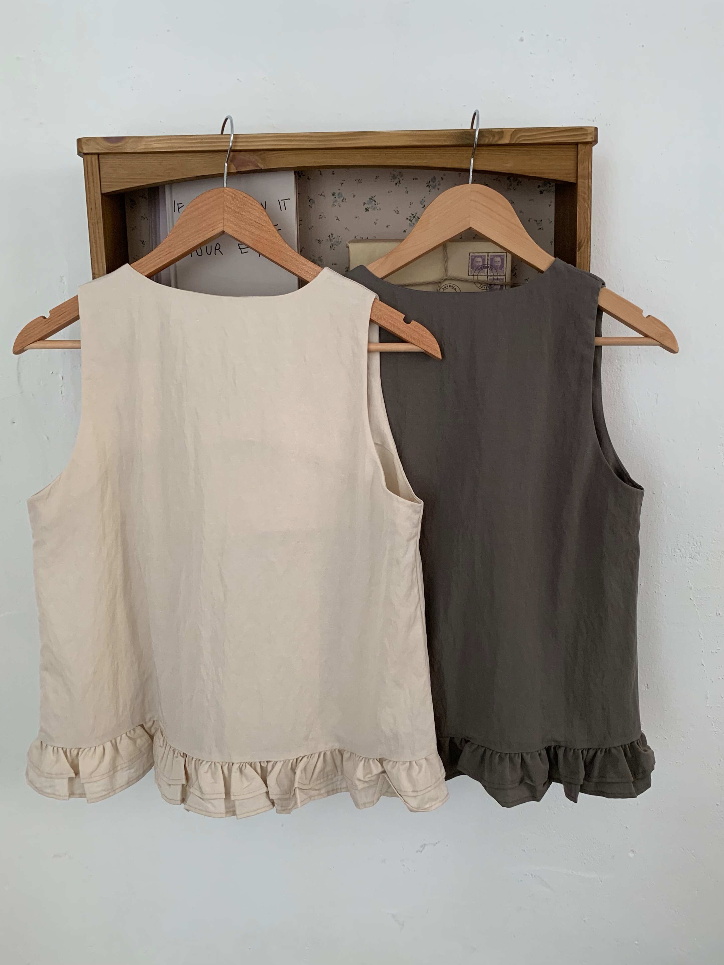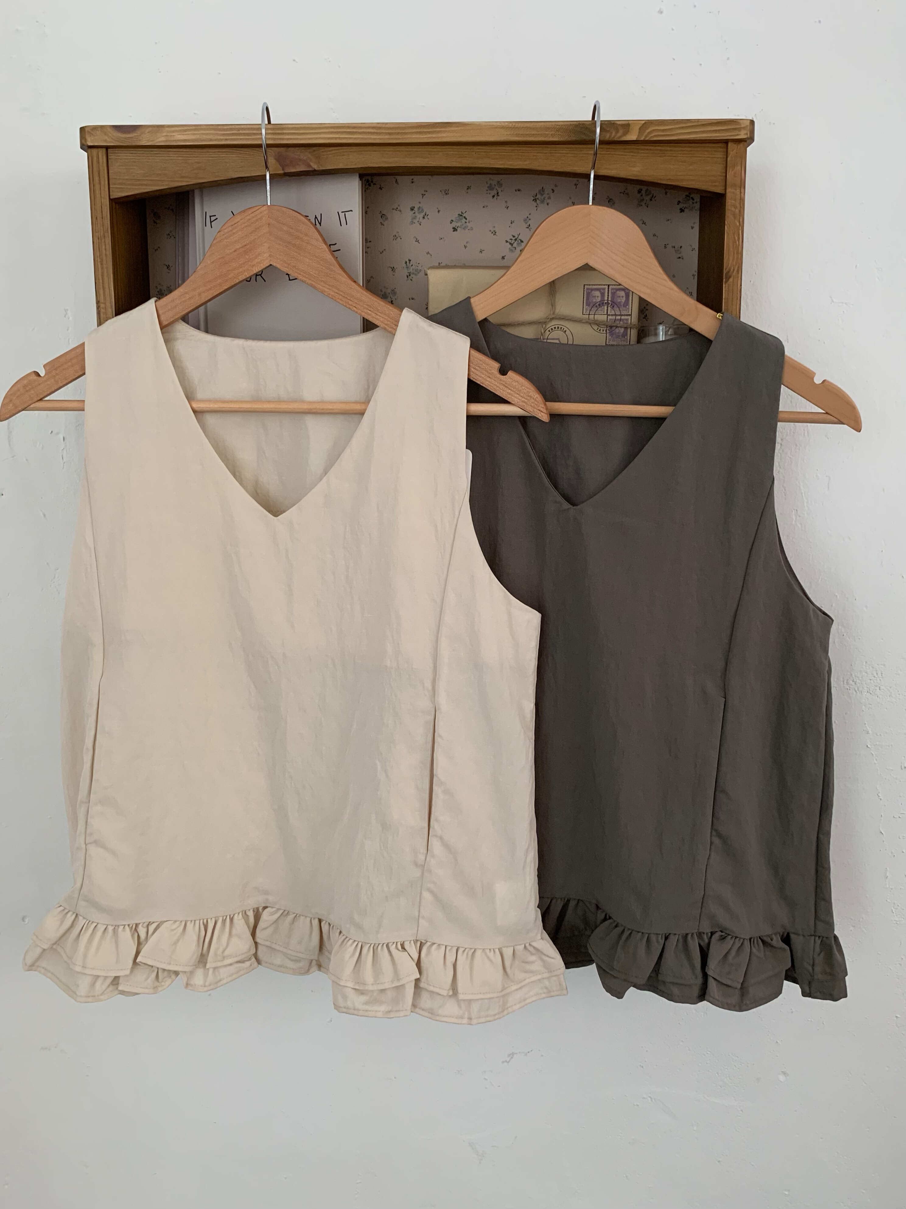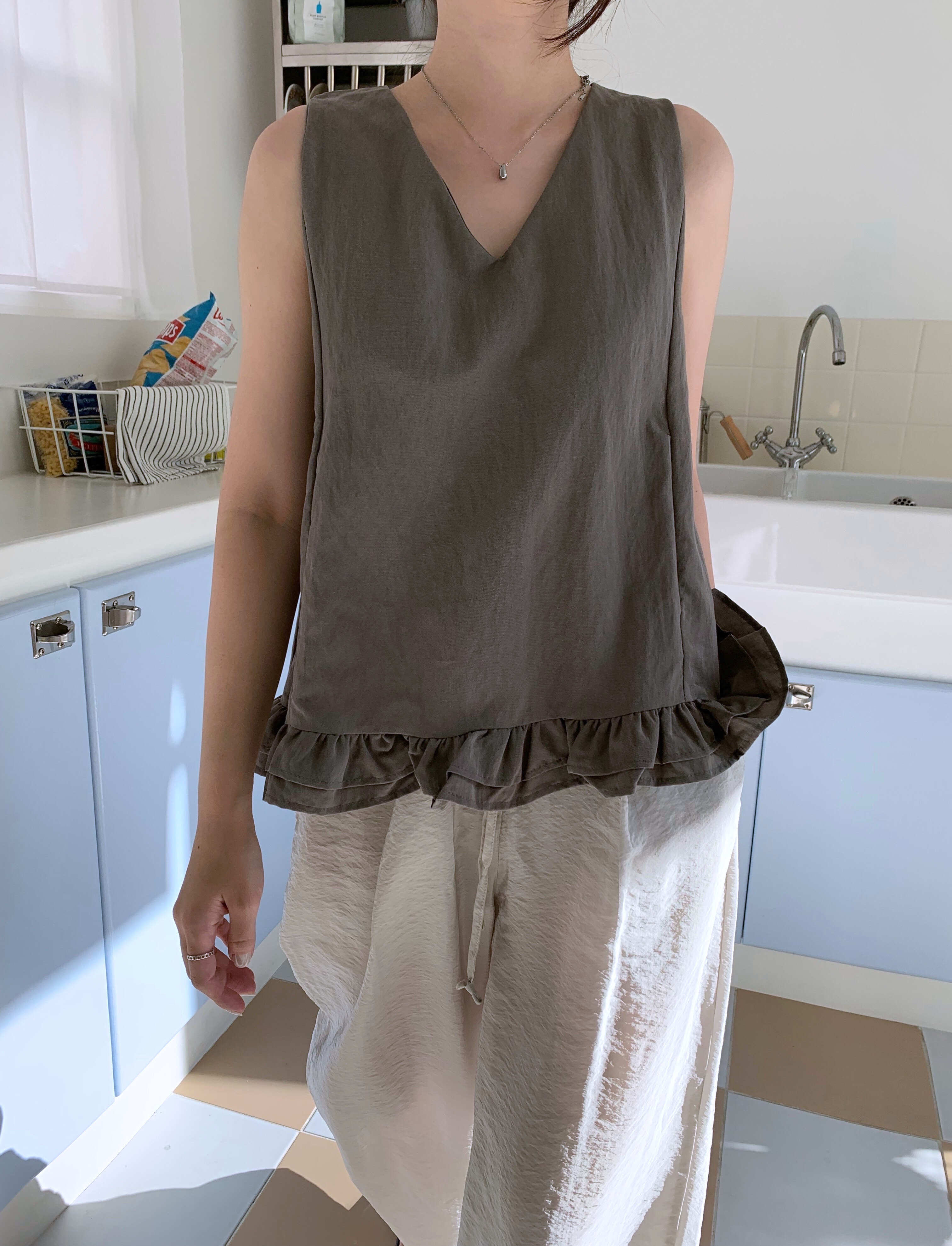 リネンフリル_タンクトップ (beige/charcoal)