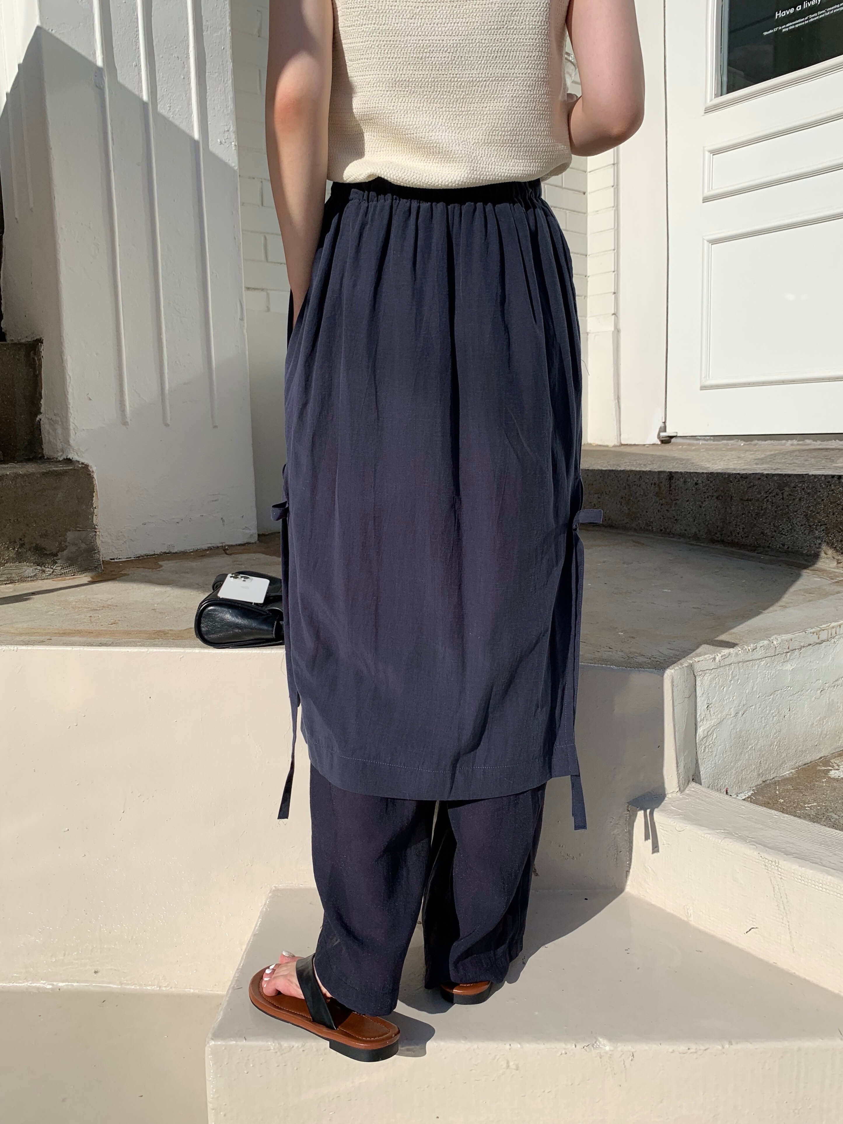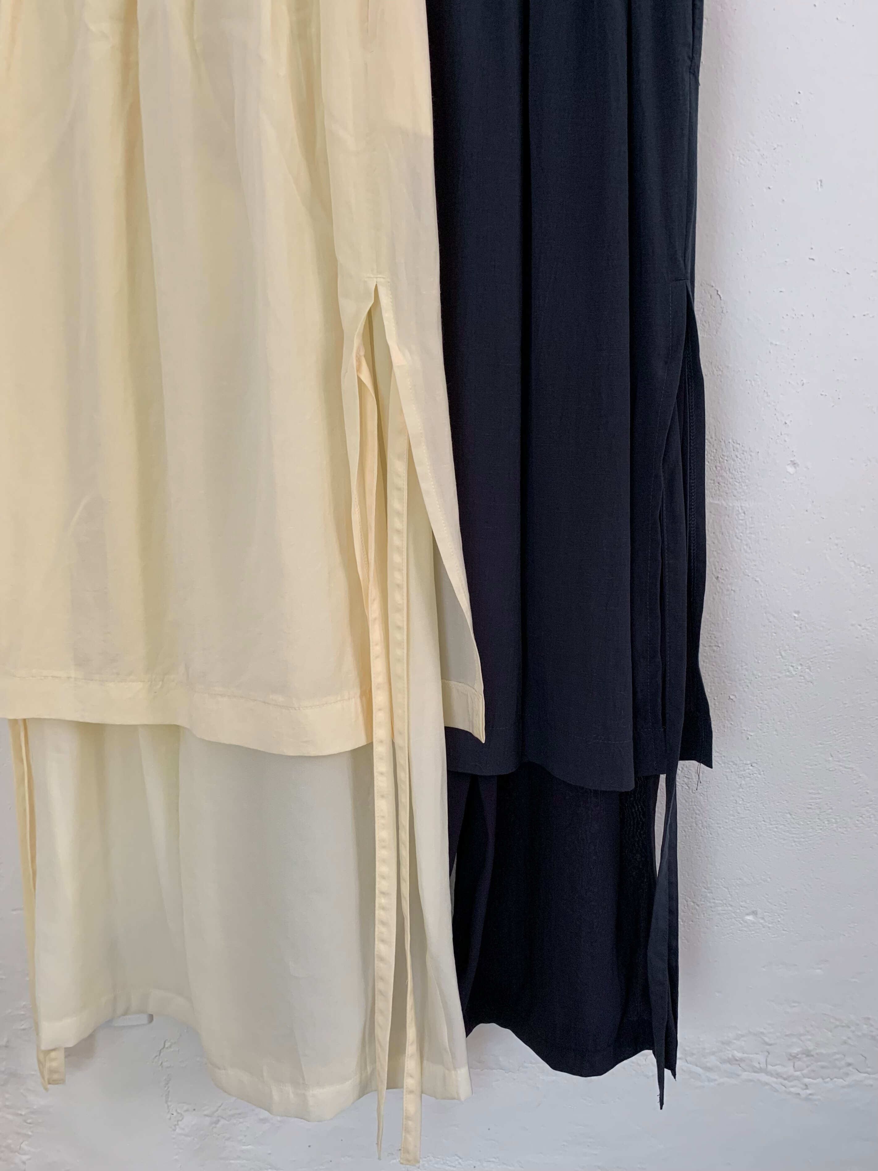洗練されたデザインのレイヤード_パンツが新たに登場しました!深みのあるネイビーとクリームの2色展開は、シンプルながらも存在感があり、さまざまなスタイルに自然に溶け込みます。柔らかな素材感が心地よく、快適な着心地を実現し、日々のコーディネートを特別なものへと昇華させます。