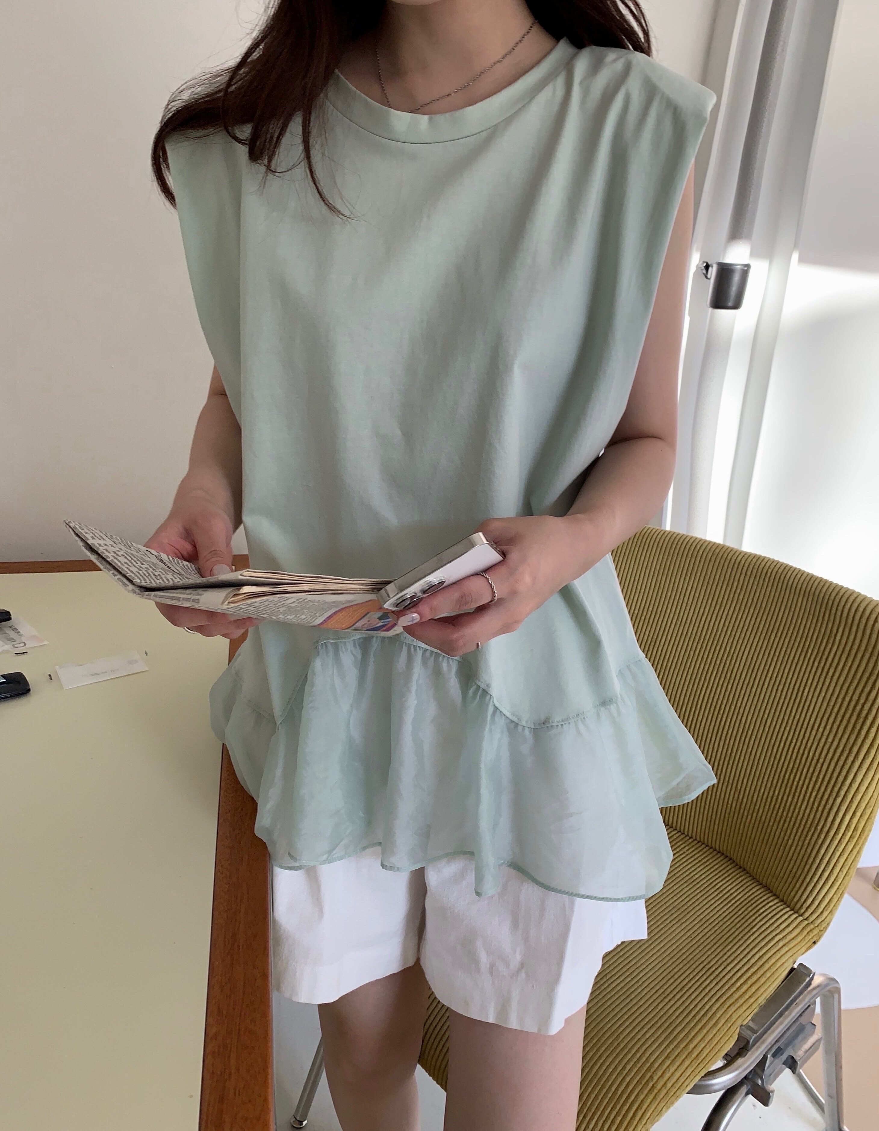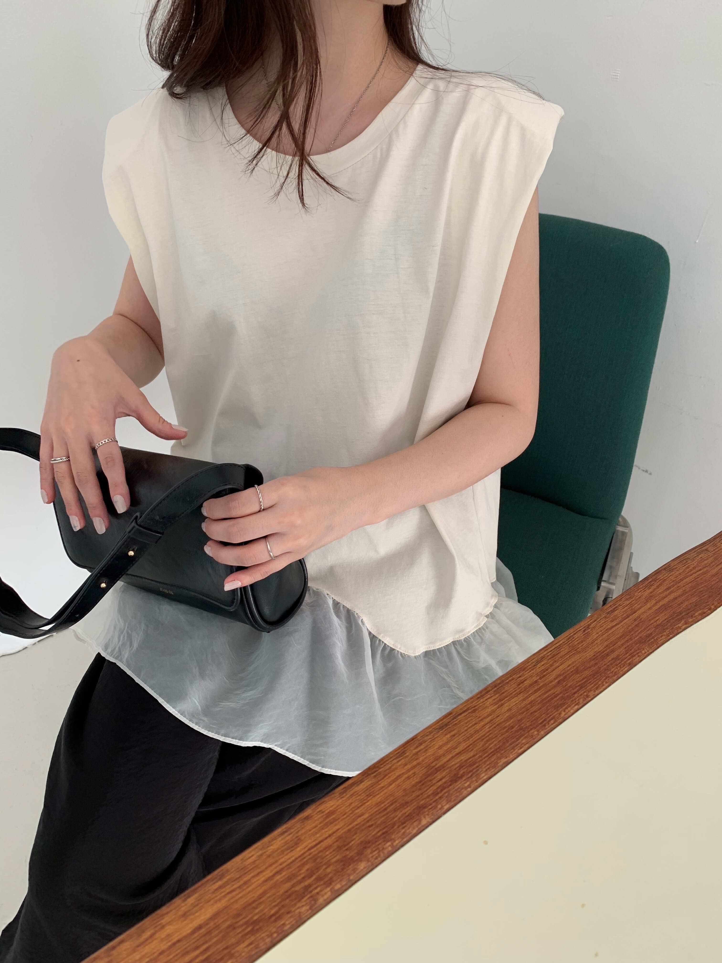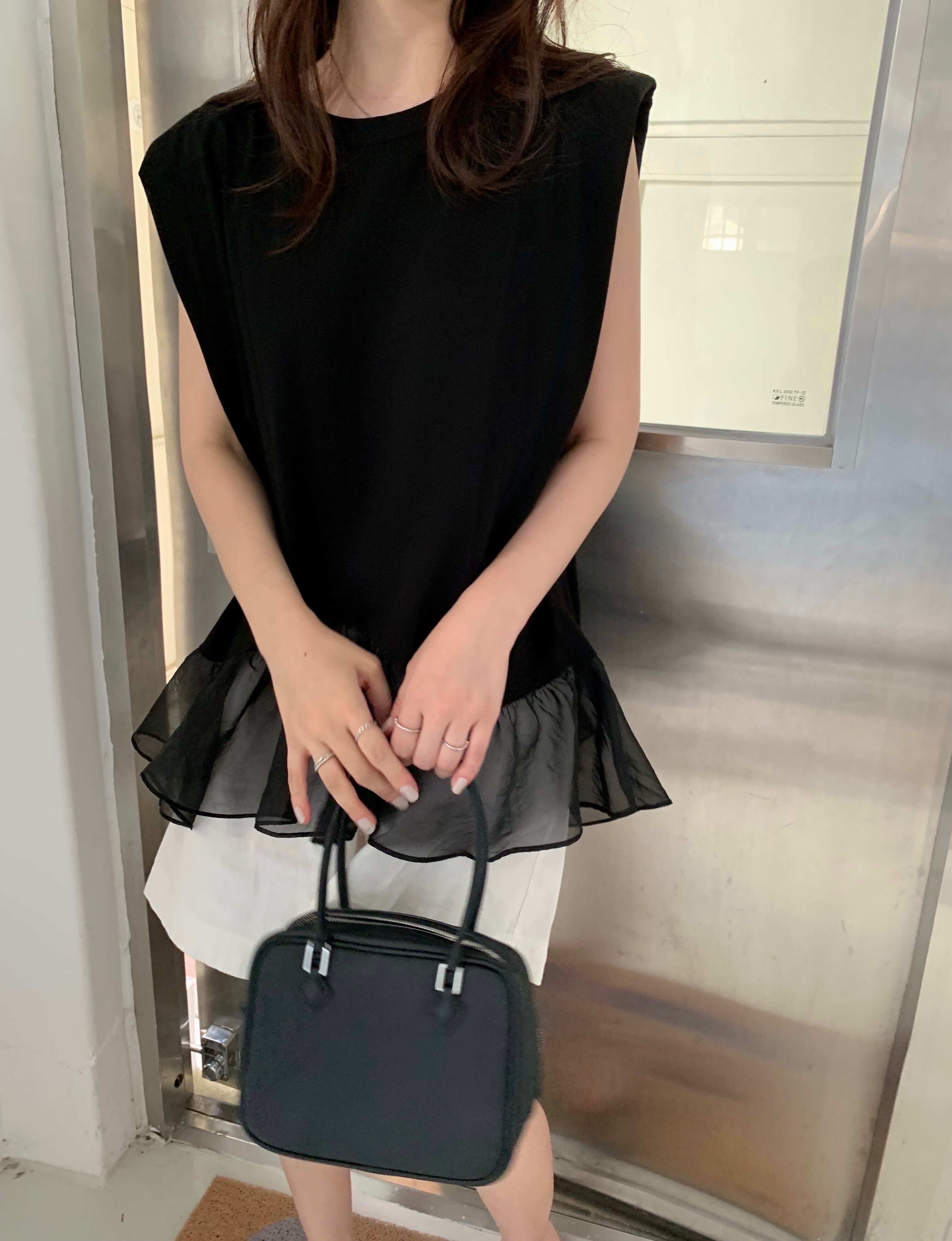 シャトーフリルレース_タンクトップT (Black / Mint / Cream)