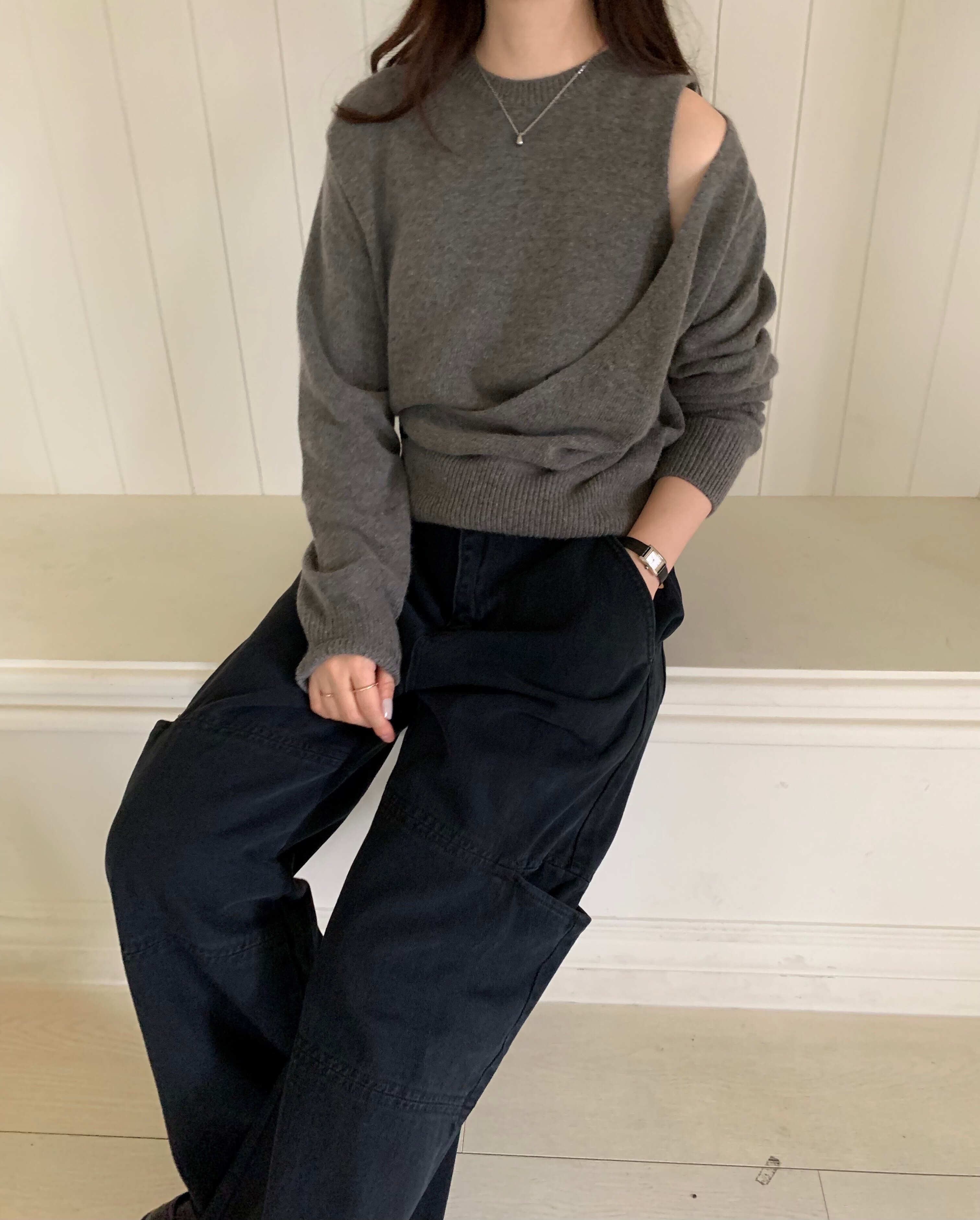 ◼️オシャレな切り込みデザインが特徴のピンタック綿デニム。